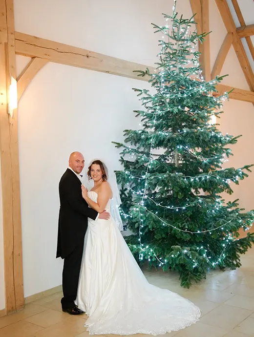 “It is an absolutely stunning venue and has been so well thought out. All of our guests commented on how beautiful it is and how well it works as a wedding venue. We decided to get married in December and the barn was ideal for a winter wedding – there was even Christmas tree!”